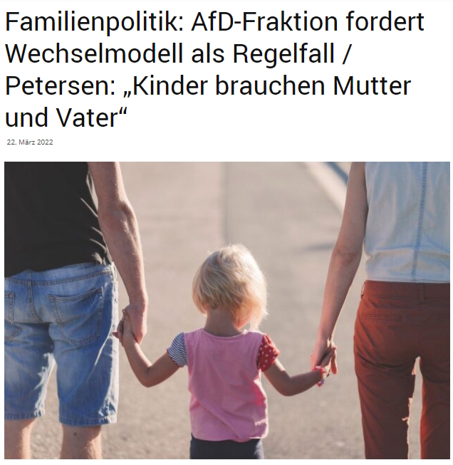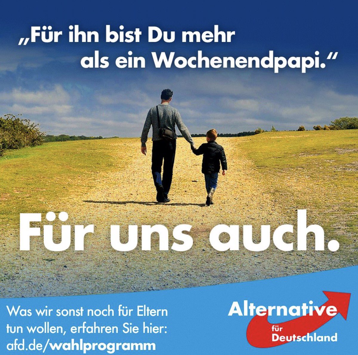 Ich habe mich dafür entschieden etwas zu tun, für unsere Kinder und moderne Familienzu kämpfen und um Brücken bauen für jede Familie mit Kindern, die auch eine Zukunft haben soll .denn unsere Kinder sind unsere Zukunft und würde mich freuen wenn auch Du etwas tust / mitmachst gegen diese Familienpolitik, die seit Jahrzehnten nichts anderes schafft als Ministerinnenskandale und ein Versagen nach dem anderen .Ich bin Mitglied und Kämpfer in der AFD Regensburg und distanziere mich von jeglicher extremer Gewalt und bin ein Vater der Mitte und dafür kämpfe ich und stehe ich , denn in diesem Vaterland ist es an der Zeit das |
